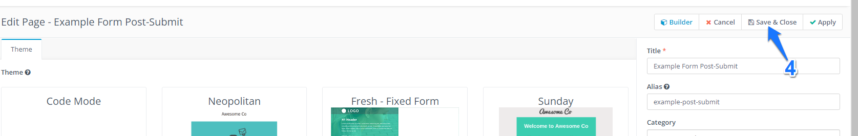 6. Give your page a Title and Alias, then click the Builder button in the top right.